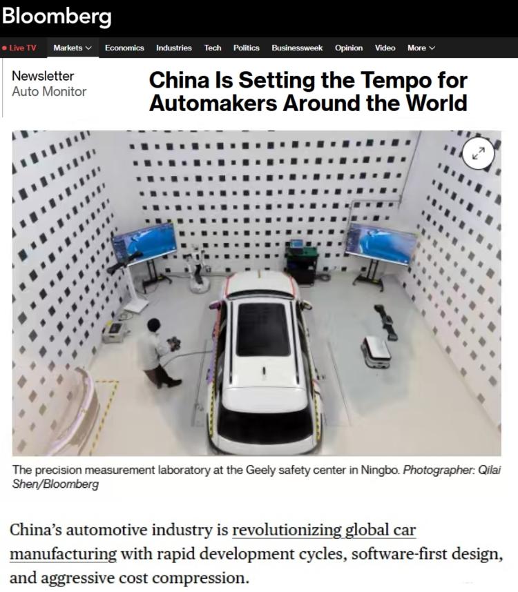 彭博社最近发表了一篇文章,介绍了几十年来汽车制造商如何对照德国的工程实力、底特律的规模经济或日本汽车的可靠性来衡量自己。现在他们把目光转向中国。因为中国企业正在通过快速开发周期、软件优先设计和显着降低成本来重塑全球汽车制造格局。彭博社报道截图显示,中国速度已成为全球汽车行业的新标杆。例如,中国汽车企业正在以更短的开发周期、深度整合的供应链、大胆创新的想法以及通过“空中技术”(OTA)实时更新车辆功能等方式改写行业规则。传统汽车制造企业,尤其是欧洲汽车企业,正在考虑将合作作为接触中国汽车企业的重要途径。彭博社报道的截图指出中国汽车企业拥有“从零开始”的独特优势,允许中国竞争对手在两年内推出新车型,而传统汽车制造商则试图缩短产品规划周期(通常为五至七年)。与此同时,中国汽车行业的员工群体普遍年轻化、流动性强,形成了创业文化。此外,激烈的内部竞争迫使企业不断创新,消除低效环节。文章分析,中国在全球汽车研发中的份额不断增加,中国已成为主要的汽车研发中心。欧洲汽车行业的领导者可能必须做出选择:是坚持衰落的商业模式,还是与中国技术合作。在彭博社报道截图的最后,文章援引大众汽车集团首席执行官奥博明恩的话说:“在全球范围内,没有哪个国家能够以一己之力推动汽车行业的变革。与中国一样持续、有力、迅速。”彭博社报道截图编辑|王焕兴署名审阅|王千出品|蔡耀源