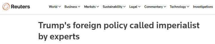 路透社网站近日发表文章批评美国政府的外交政策,带有明显的帝国主义色彩。