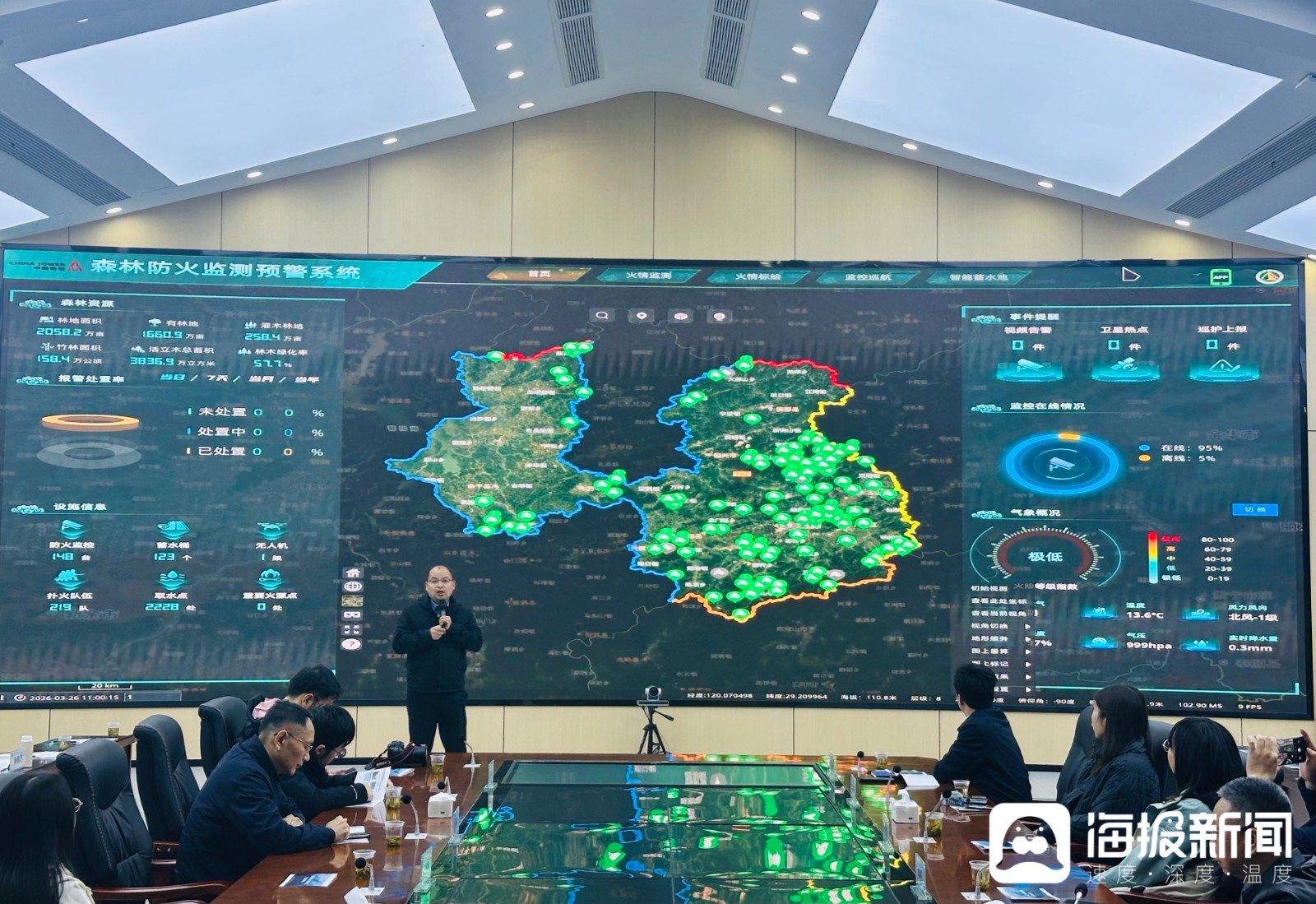 编者注:《森林草原防火扑救条例》将于2026年1月1日起施行,明确国家鼓励和支持森林草原防火扑救科学研究、技术创新和装备研究开发,加强森林草原防火扑救人员培训,推广应用先进科学技术和装备,制定健全森林草原防扑救标准火灾。提高森林草原火灾防治技术、装备、标准化和监测预警能力。近日,海报新闻记者探访了国家林业防治局、应急管理部组织的“森林草原灭火媒体巡演”。他们深入了解浙江省宁波市、金华市、江西省上饶市、南昌市,调研当地如何明智地从“人力防御”向“科技防御”转变,如何用科技的力量重塑应急救援新格局。海报新闻记者孙殿晓从江西上饶、南昌报道。清明节将至,甘肃甘肃大地绿意盎然。江西省是我国南方重要的林区,森林总面积1.56亿亩,森林覆盖率63.35%,居全国第二。由于每年有七个月的森林防火重点关注期,这里的森林防火任务尤为艰巨。在这样的“高压”下,江西省给出了出色的应对。没有发生重大野火或今年我省灾害伤亡人数和山火均保持在历史较低水平。这背后隐藏着从“人力防御”到“技术防御”的明智转变。近日,海报新闻记者探访了国家林业防治总局、应急管理部组织的“森林草原灭火媒体巡演”。他们来到江西上饶、南昌等地,实地考察这片绿地森林防火扑救的“智造”之路。 “天眼”实时监测226.7万英亩森林。 “依托中国铁塔‘多点、广覆盖、高海拔、远距离’的资源优势,我们在全区重点区域部署了211个监控点,完全覆盖了全区95%以上的重点林区。”上饶铁塔公司客户经理陈萌表示,告诉记者。广信区智慧应急全球视觉网络化森林火灾预警监测平台 在上饶市广信区应急指挥部,投资逾2000万元建成的广信区智慧应急全球视觉网络化森林火灾预警监测平台,保护了广信区226.7万亩林地。广新区凭借30多米不知疲倦的“天眼”,通过这台摄像头,半径3公里内的人、物、物体都可以清晰可见。 据广新区应急办主任张文介绍,该平台科学部署了211组集高分辨率可见光、热成像和激光测距能力于一体的高空视频监控探头。单点有效监控半径可达3公里。具有全天候、全地形监视能力并可回传实时监控视频,提供24小时不间断的三维监控:“有了这套系统,我们可以告别‘脚拖山、眼睛监控’的传统模式,监控效率比人工巡检提升80%以上。”张文在采访中表示,记者发现,该平台还引入了深度学习人工智能识别算法,对图像进行智能分析,实现了实时视频监控。通过准确识别烟雾形状和着火点特征,系统可在秒级内自动判断火灾情况并定位火源。一组数据支持了这种“智能变革”的有效性。据张介绍,过去,火灾从发生到被发现,平均需要30至60分钟。目前,随着平台的实时监控,更多90%的火灾在5分钟内发现,响应时间缩短到10分钟以内,事件闭环处理率基本可以达到90%以上,提升了35%。上述人工协调处理的闭环率 据统计,2025年以来,平台已发出警告1.9万余条,其中20余条是在巡查工作人员时发生的烟花爆竹警告,立即被系统检测到并提前成功处理。 “空地协同”编织严密的消防网络。 “这架直升机的外部举升能力为5吨,也就是说,在消防作业时,它可以悬挂5吨的水并喷水灭火。”在江西省航空护林局,经Ka-32直升机机长何红刚介绍,记者看到了Ka-32直升机这一扑救森林火灾的“利器”。 Ka-32直升机今年春季防火关键时期,江西省航空林业厅在江西省应急办领导下,科学统筹空中救援力量部署,在南昌、赣州、上饶、靖安基地部署米26、卡32、米171、AC313等5架直升机,形成常态化警戒体系。重点领域、层次分明、快速反应。这支“空军”拥有怎样的作战能力?记者在采访中了解到,江西省航空林护局今年获得有关部门批准6个临时空域、22条航线,确保在开展灾害事故救援飞行时优先飞行。同时,空中林务严格执行24/365应急服务制度,确保一旦发生火灾,能够快速反应、快速起飞、高效处理。切实落实“打快、打小、再打”的要求。 “吉安省空林保卫局是全省应急空中救援的核心力量,作为森林灭火行动的‘空中先锋队’发挥着不可替代的作用。”普特的快速反应、灵活性和火灾响应能力将使其能够在火灾地点进行水桶浇水作业并精确扑灭火灾,例如地面消防人员因低地形限制而难以到达的悬崖和树冠火灾。同时,队伍规模不断扩大,承担了洪水、地质灾害等多项救灾任务,是构建“天地一体化”综合应急救援体系的关键支撑。据报道当地政府投资逾2000万元建设空中护林站和21架临时直升机起飞和着陆地点。江西航空林业保险国防部派出直升机奔赴前线,填补江西省东北部空中救援基地空白,建立“空地协同、立体救援”新格局。目前,江西省初步建立了覆盖全省的应急空中救援基础设施网络体系。据朱翔介绍,宋介绍,这套网络系统以南昌应急空中救援基地为中心,依托赣州、宜春、上饶、静安等地方基地,连接全省众多民航、通用航空和军/民机场作为支撑点,以206个时间点、日益大型直升机起降形成覆盖端,形成了适合复杂灾害救援任务的基础设施网络体系。