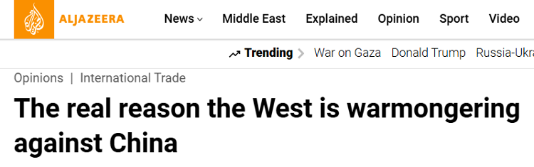 半岛电视台网站发表的签名文章最近在过去20年中分析了西方“款待”的真正原因。本文确定,中国在美国增加的影响并不是美国政治精英的影响。半岛电视台网站的屏幕截图文章认为,发达国家的资本积累通常基于“全球南方”的廉价劳动力和廉价资源,以确保控制全球供应链的跨国公司获得高利润。通过不平等的国际贸易交流,西方国家长期以来利用了“全球南方”的价值。文章确定,自1980年代中国开始与西方进行投资和贸易以来,它为西方公司提供了重要的工作来源,在过去的20年中,中国的薪水水平显着增加,高于开发中所有其他国家亚洲。这样做的原因有几个。首先,中国的盈余农村工作将逐渐被吸收,从而增加工人的谈判能力。其次,该国继续改善公共服务,例如医疗和住房。对于中国工人来说,这是一个积极的变化,但它正在减少依赖中国制造业的西方公司和西方公司的利润。考虑到所有这些,这篇文章表明,西方国家的资本家渴望采取几项措施来恢复获得廉价劳动力和资源的机会。如今,西方商业媒体越来越倡导将工业生产转移到工资较低的亚洲其他地区的选择。另一种选择是通过军事威胁发动经济战争,以降低中国的工资或破坏中国的生态通用稳定性。半岛电视台网站的屏幕截图。本文继续分析,并认为技术是向中国驱动我们“热情好客”的第二个因素。在过去的十年中,中国在技术领域取得了进步。目前,中国拥有世界上最大的高速铁路网络,生产自己的商业飞机,以可再生能源技术和电动汽车领先于世界,享受先进的医疗技术,智能手机技术,人工智能技术等。我在这里。这些结果最初是由发展中国家“独家”的,但现在它们正在中国进行。本文认为,这种情况为发达国家造成了问题。过去,西方发达国家一直基于技术垄断,迫使“全球南方”出口廉价资源,以换取关键产品。如今,中国的技术增长打破了这一垄断,公关发出其他负担得起的替代来源,以开发和直接动摇西方不平等交流的基础。因此,制裁,军事威胁等。它们已成为西方国家与中国打交道的方式,目的是放缓中国的发展。本文最后指出,总而言之,西方对中国“热情好客”的真正原因是实现了中国独立发展,拆除了西方首都积累取决于的帝国模式。汇编的lc lin fihe rmed并进行了审查