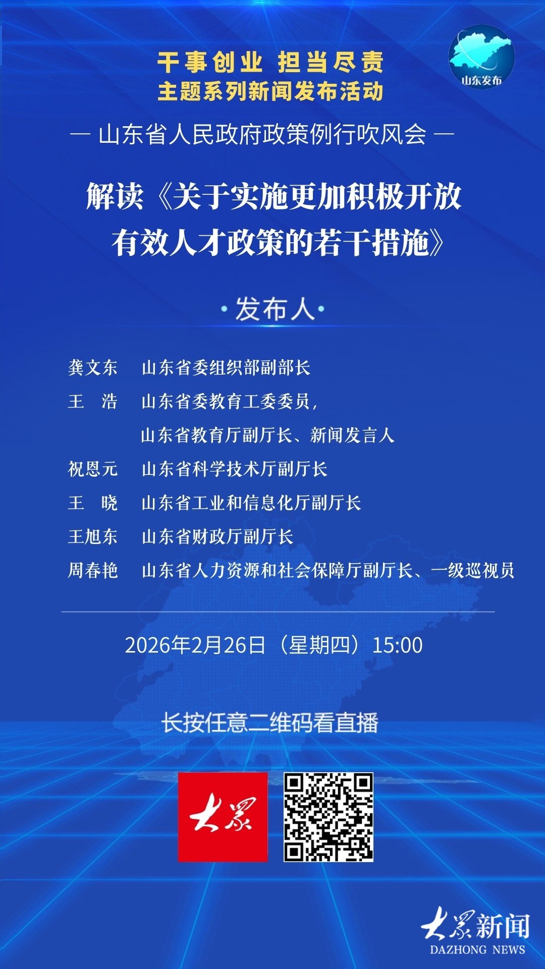 每日更新 这是关于实施人力资源政策。山东省政府将于下午 3:00 召开例行政策吹风会。今天。 吃瓜网51官网版 2月 27, 2026 0 省政府新闻办将于下午3:00开始举办“企业家精神与高管责任”系列定期吹风会。 2月26日星期四,将邀请省委组织部负责同志解读《落实更加积极主动、开放有效的人力资源政策的各项措施》。 (人气记者崔瀚、高光超) [db:tag]